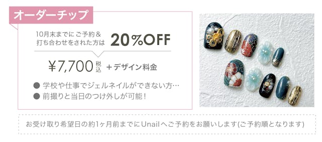 - オーダーチップ(10本) Unail ¥7,700(税込)+デザイン料〜