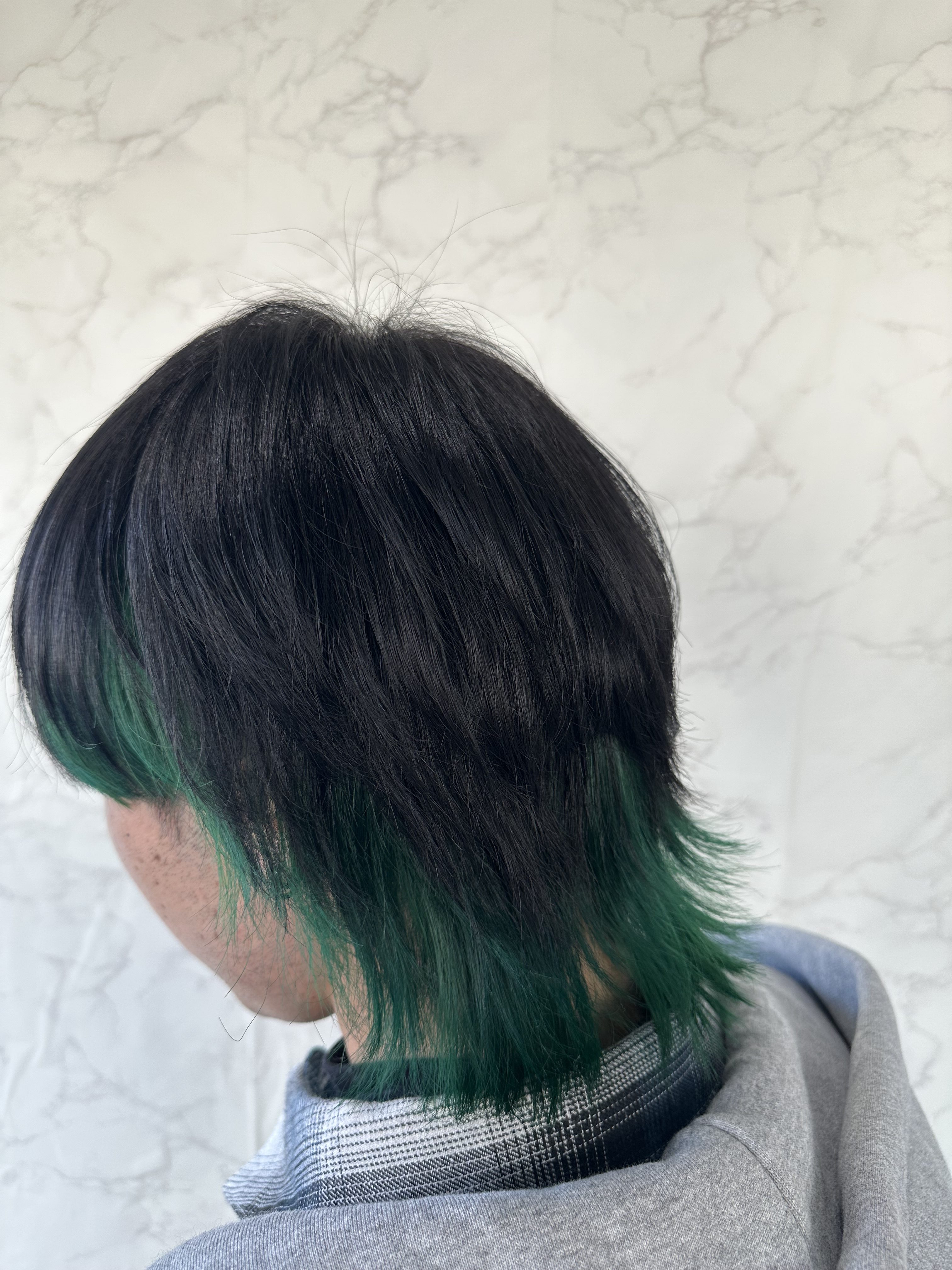 お写真はブリーチ一回のグリーンカラーです!