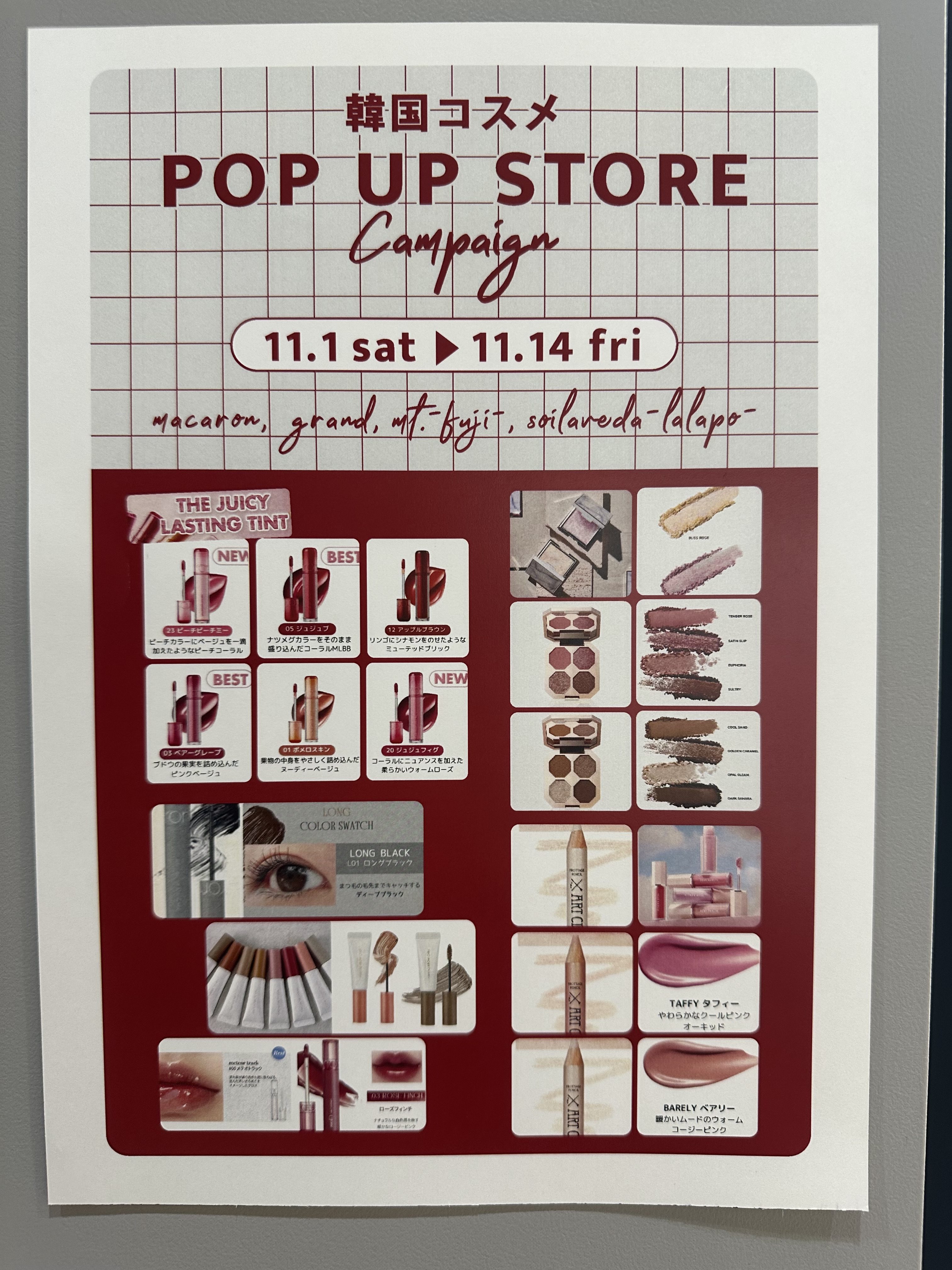 韓国コスメフェア11/1~11/14まで二週間限定でやります!